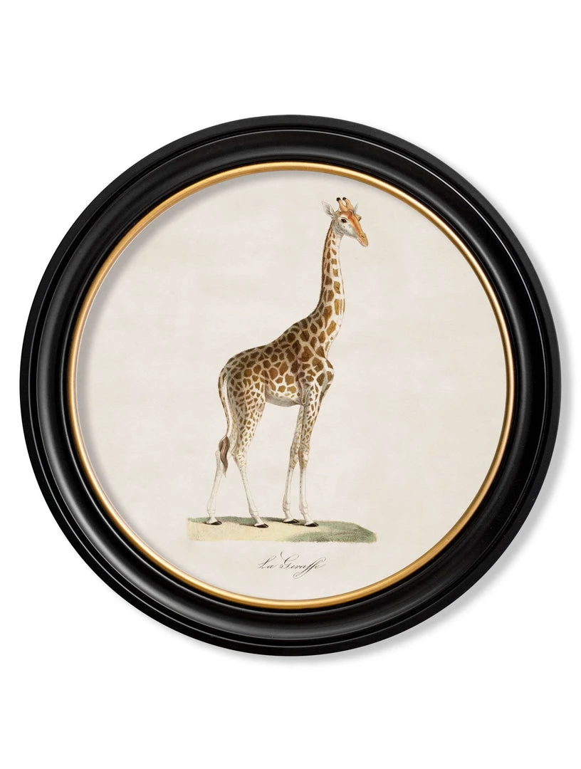 A vibrant 1800’s print which illustrates a giraffe. Giraffes are the largest land mammals on earth.