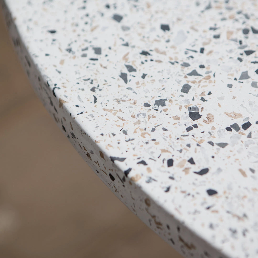 Create a comfortable and stylish outdoor or indoor dining area with our Barrow bistro table, featuring a tapered bronze effect metal base and light terrazzo top.Â