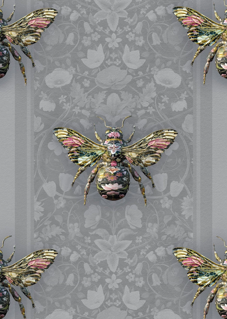 Detailing a magnificent colourful bee on a floral grey background, this will add a touch of bespoke glamour to any home – Stunning!