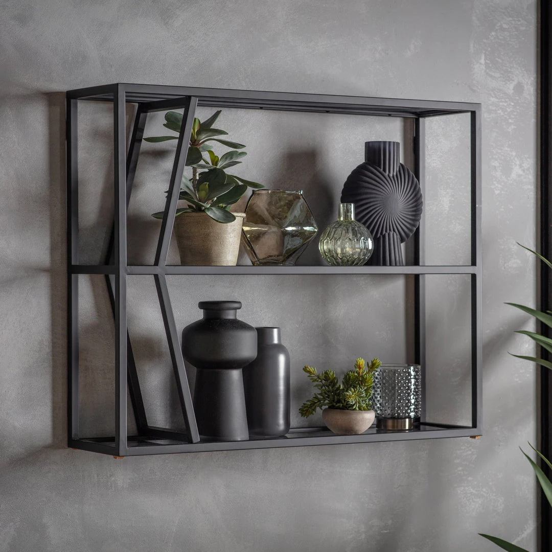 Display your finest accessories, books or liquor! This is a knockout piece, with its angular dark metal frames, the Georgia, combined with its smoked glass shelves, creates stylish contemporary design piece. This stunning shelf unit offers a stylish and practical design.