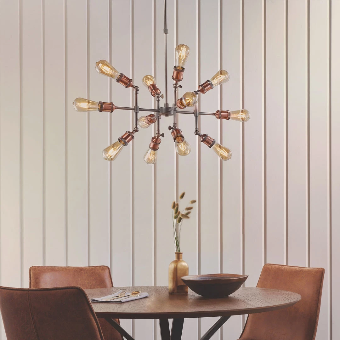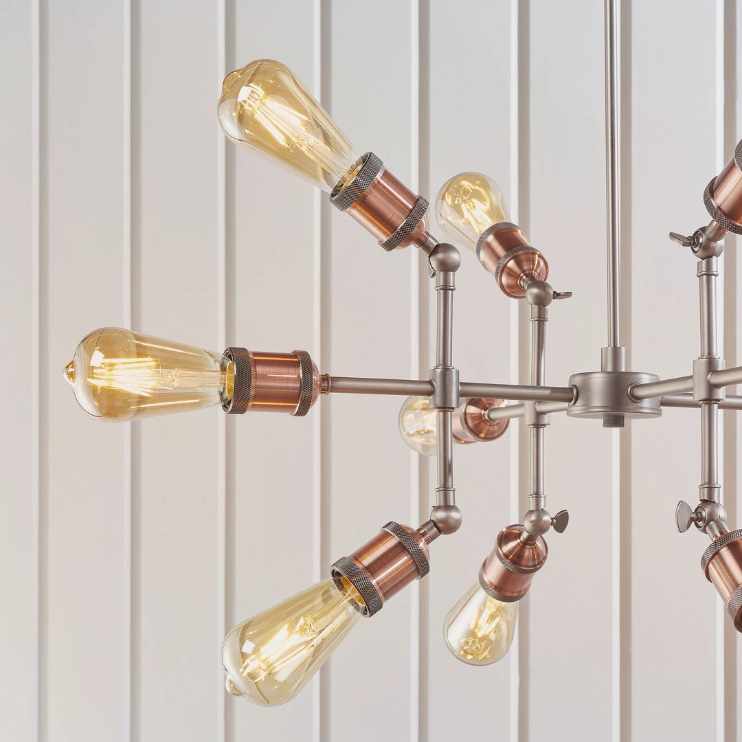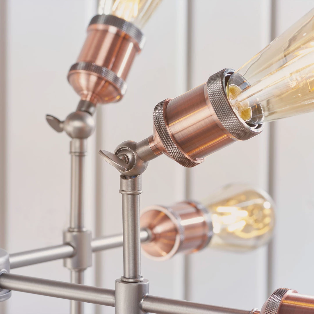 Adjustable knuckles and knurled lamp holders complete the authentic look. Featuring an adjustable centre stem, perfect when paired with filament LED lamps.
