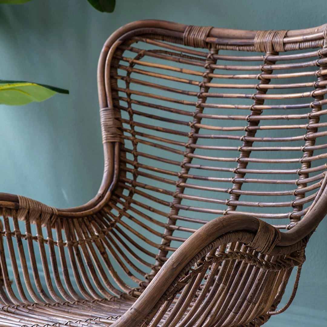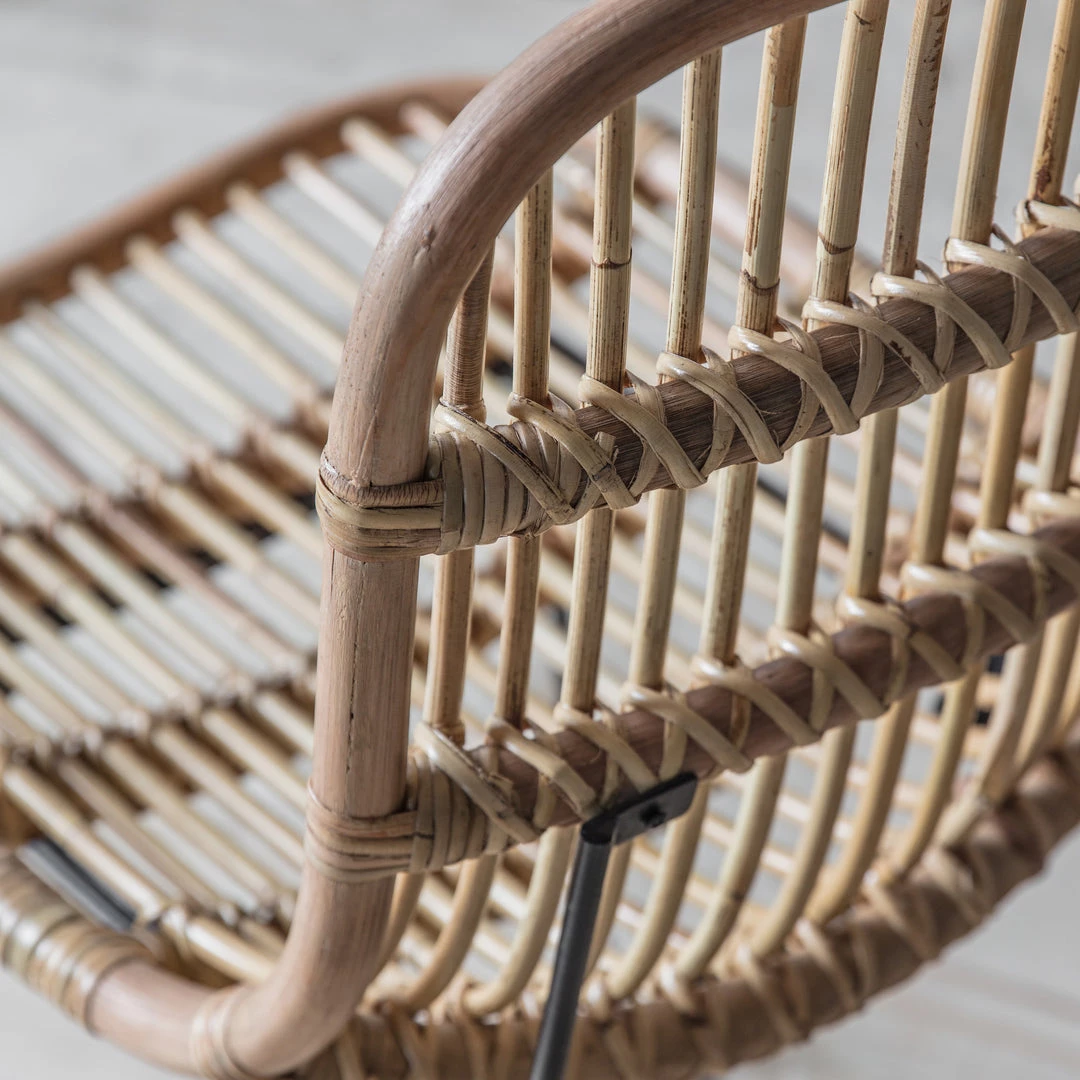 The gorgeous Jenner smoked finished Rattan lounger is perfect for relaxing in. Ideal for indoors or occasional outdoor use with gunmetal finished legs and base.