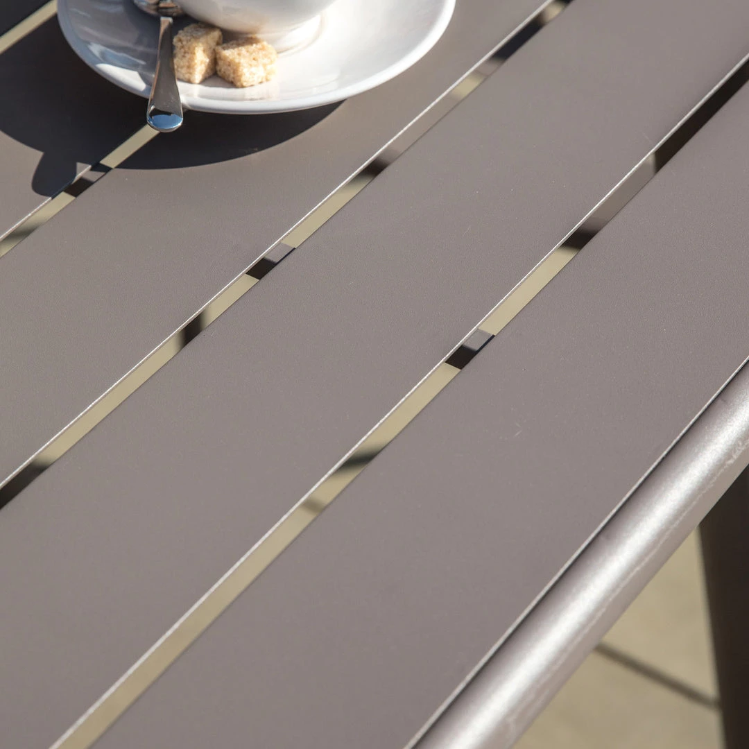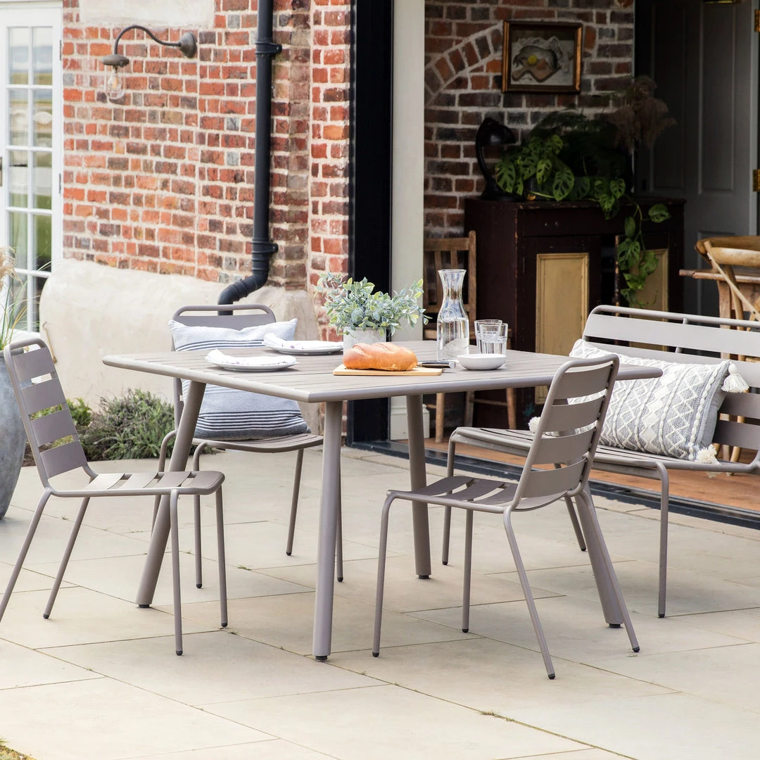 Ideal for gardens and patios alike, the Kenworth table is crafted from steel with a lovely, subtle warm grey finish.