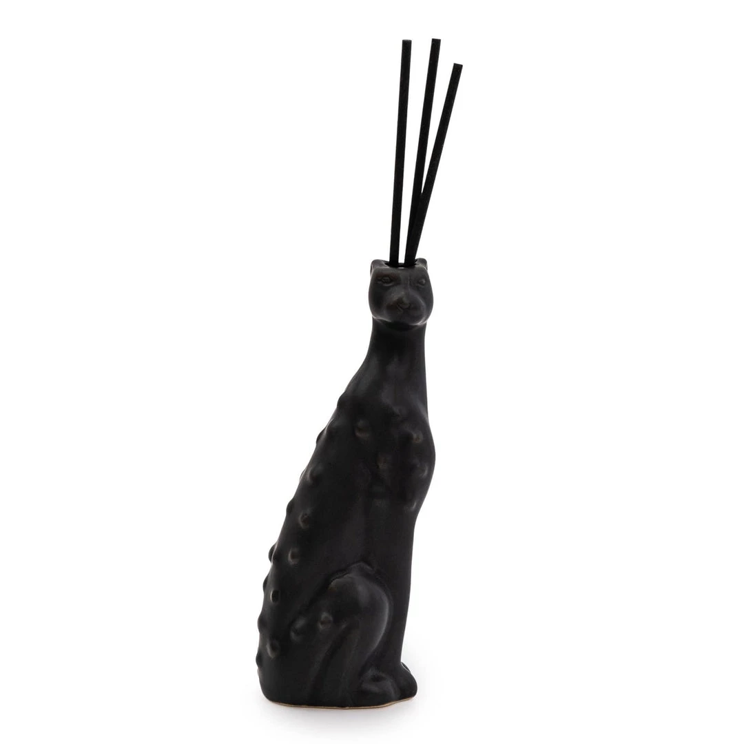 Puuurfect for the maximalist animal lover. The midnight pomegranate scent is presented in a ceramic leopard shaped diffuser pot, finished in stunning matt black glaze.