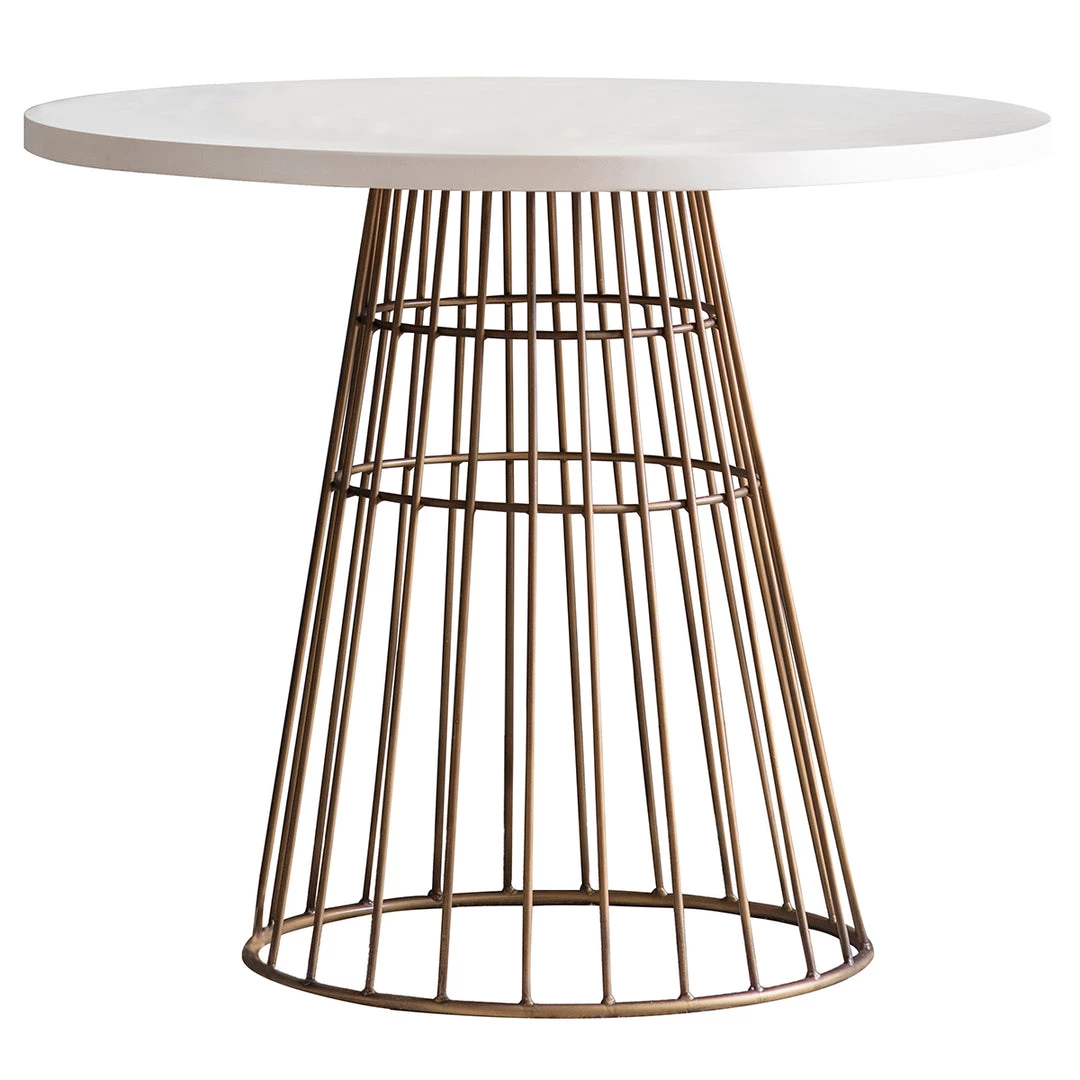 Add the Ashton bronzed cage framed Bistro table to your outdoor or indoor living space; this space conscious table has a white concrete top and is perfect for indoor and occasional outdoor use.