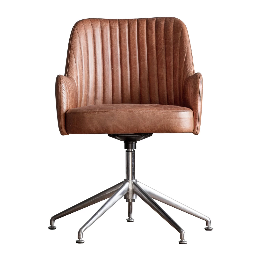 For stylish home office working, this chair offers the perfect solution and is upholstered in full leather with vertical stitching to add detail and has a lightly padded back and sides with a deep padded seat for comfort, paired with a stable base in classy silver finish.