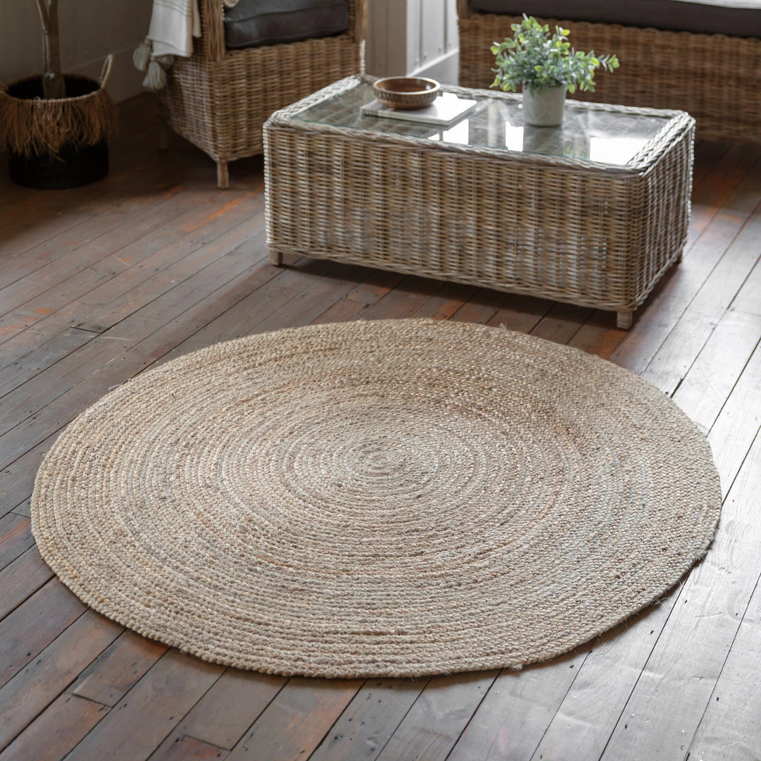 The Bengal Seagrass round rug perfect for adding a rustic and natural touch to a room.