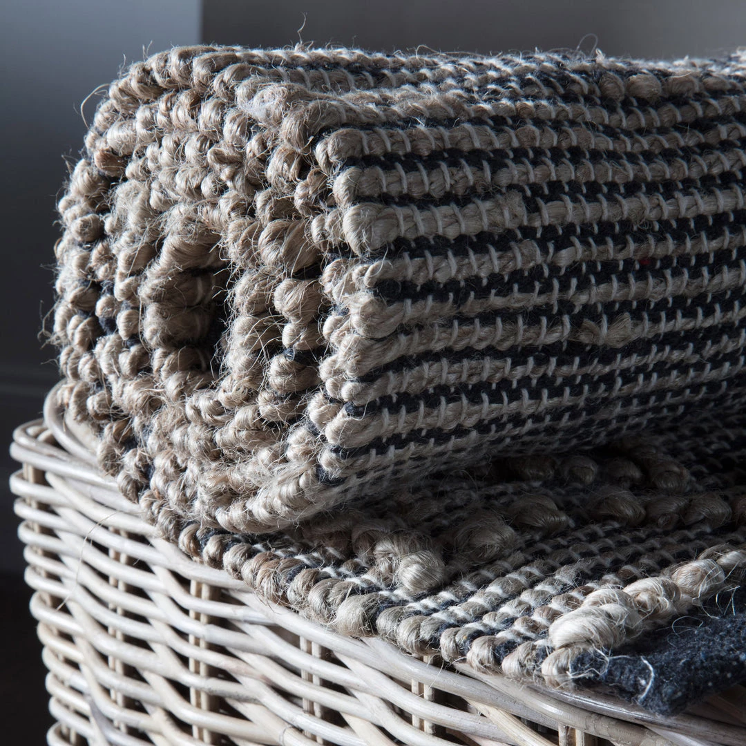 Looking for something different? Beautifully Handwoven by skilled artisans in India, La Sonrisa is a jute cotton mix rug features a stylish geometric tribal design in 2 tone black and natural colourway. Its a spectacular statement piece to any home.Â