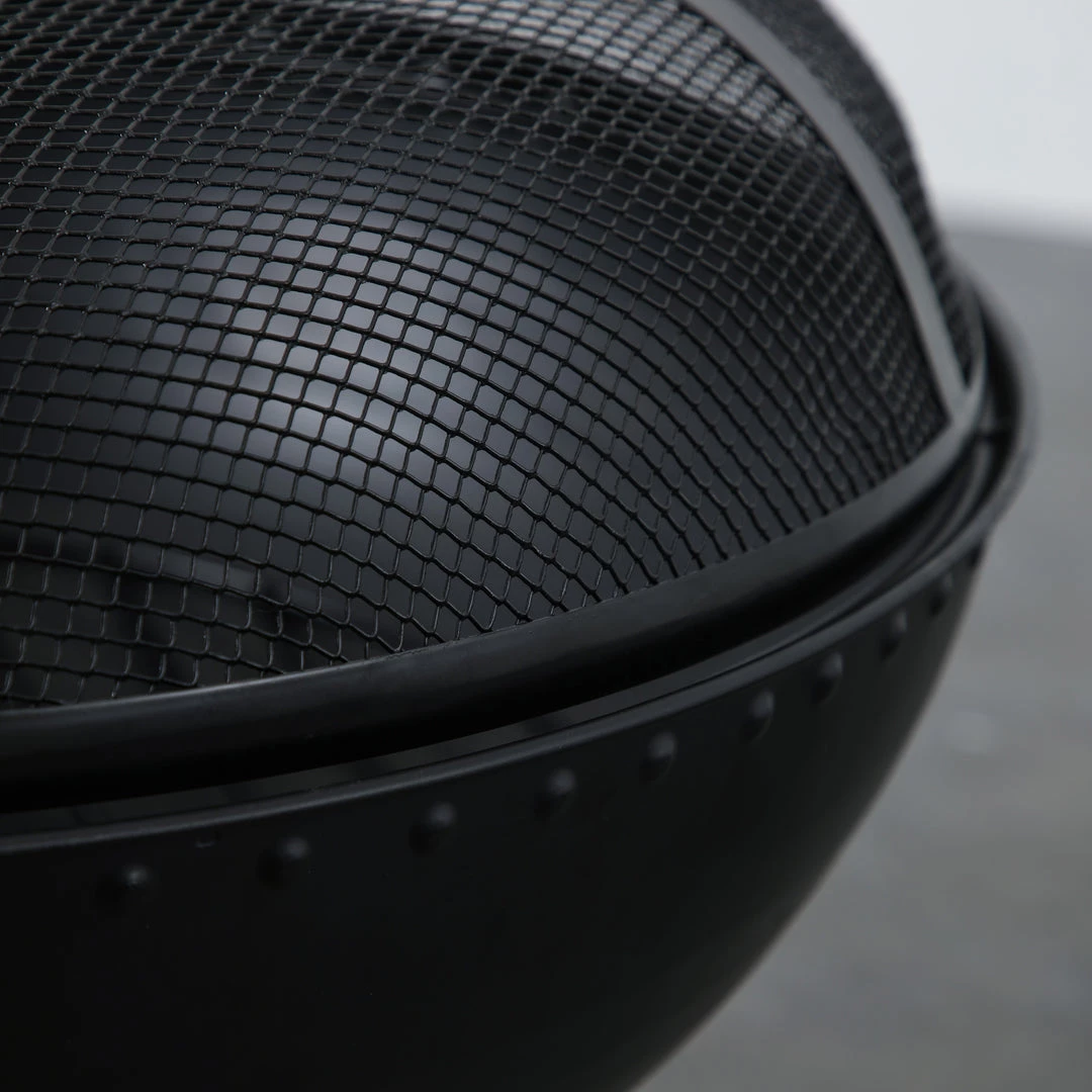 This traditional style firepit features a bowl-style pit on an integrated base. It is crafted from high quality Indian iron with a heat resistant finish, and comes complete with grill cover and poker.