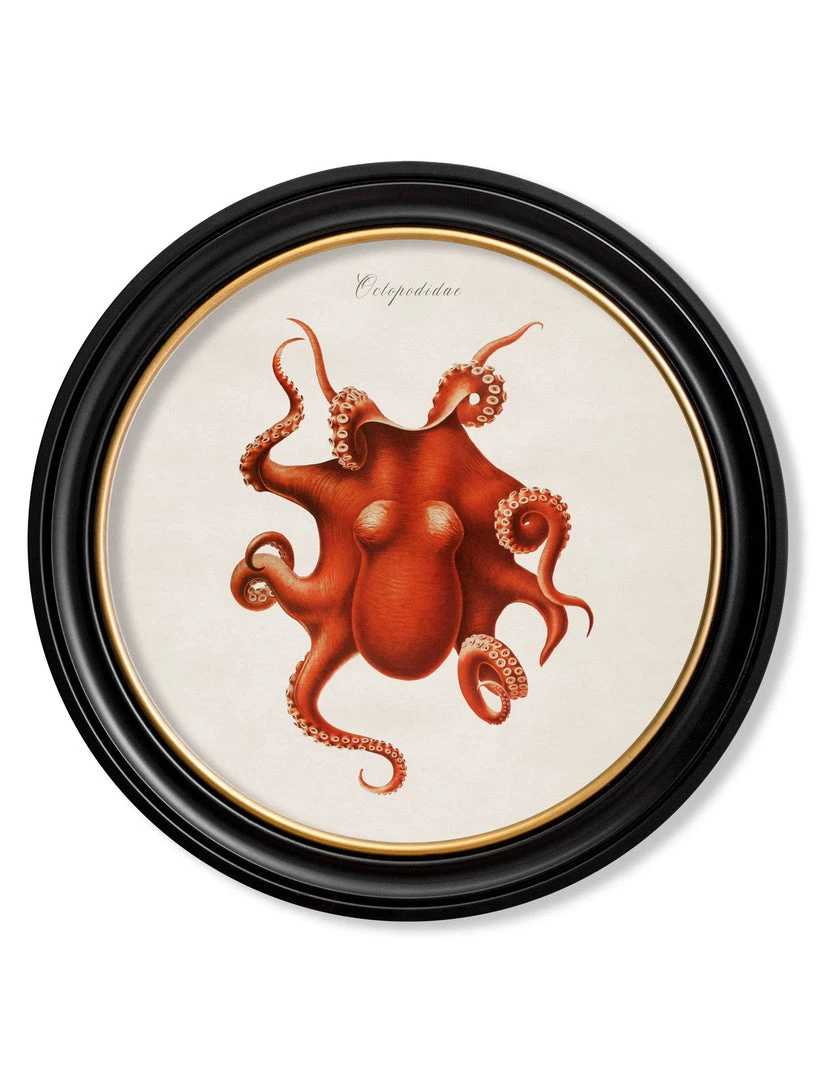 A vibrant collection of late 1800’s prints which reference beautifully illustrated marine life. In this case the vibrant octopus!