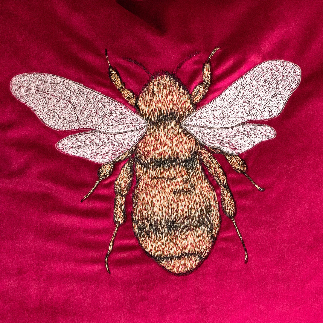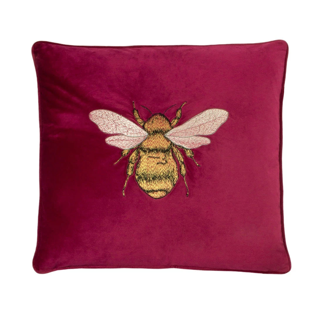 Buzzing Ppink Velvet Bee Cushion. With it’s gorgeous gold embroidered bee design, this is perfect to add some buzz to your space!