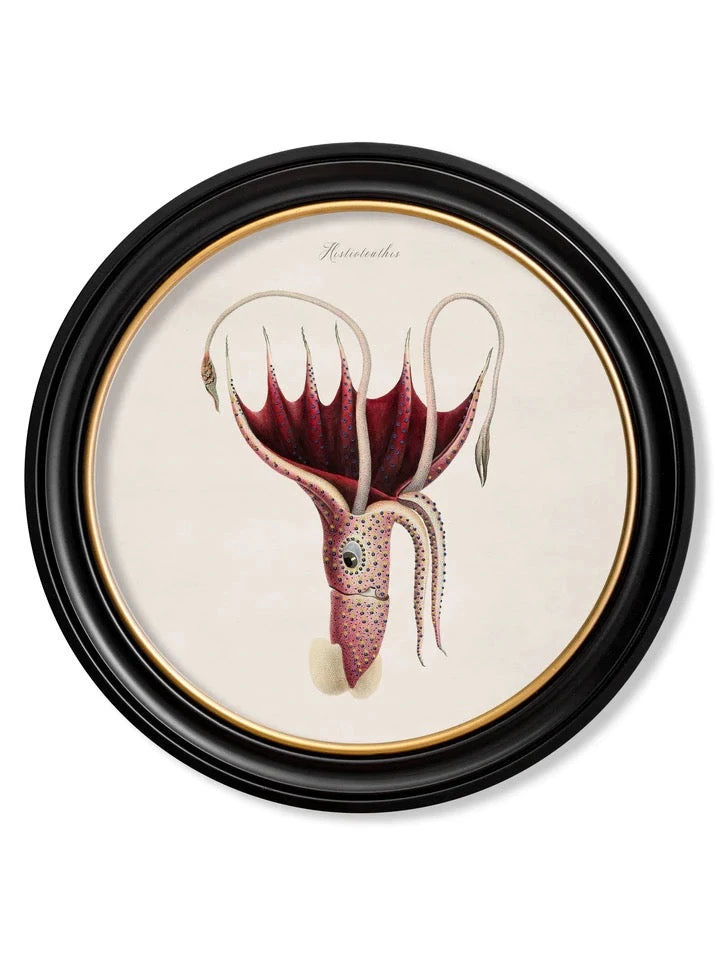 A vibrant collection of late 1800’s prints which reference beautifully illustrated marine life. This stunning collection features 4 framed prints of the Crab, Lobster, Squid & Octopus!