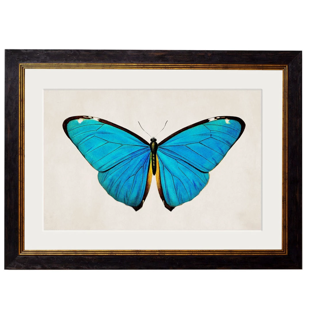 This print references the work of an1800s naturalist. A study of a colourful Blue Morpho Butterfly. These butterflies are some of the largest on earth having a wingspan of up to 30cm