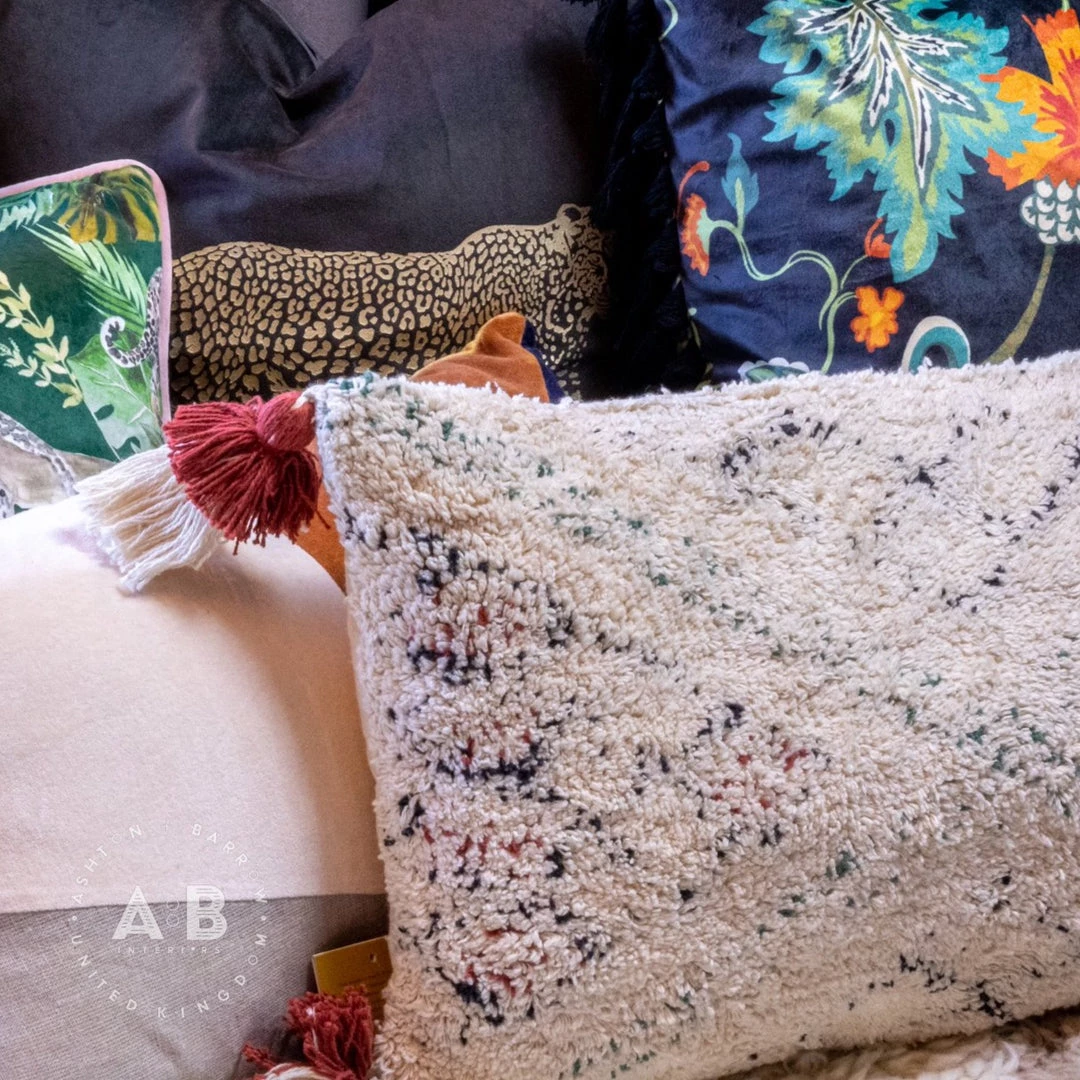 This unique Persian kilim design feather cushion with it’s plush high-pile cotton tufting is beautifully soft and adds a new layer of texture to a room. The double-layered corner tassels add a splash of colour and interest whilst being subtle enough not to overpower any pairings.