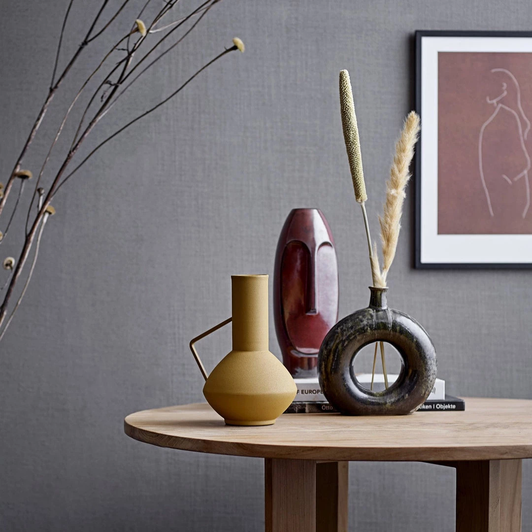 Handcrafted stoneware vase in a deep green and black colour with an engraved pattern.