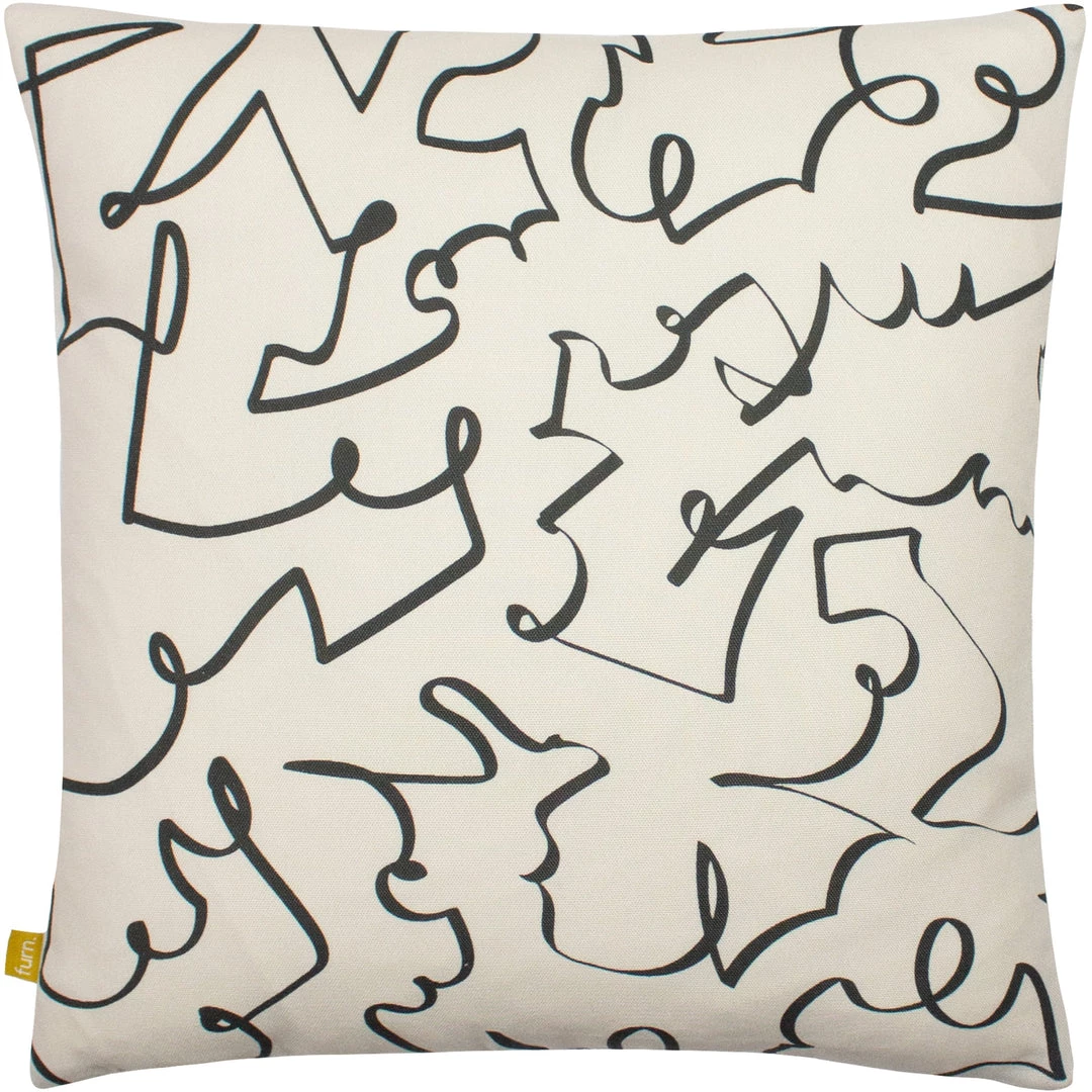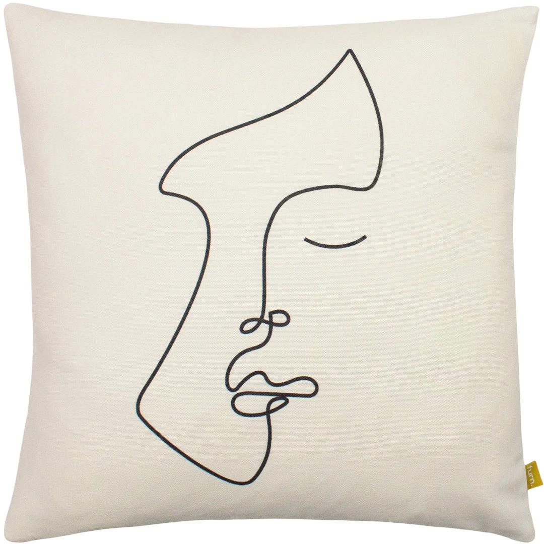 Bloomingville Stylised Face Illustration Print Feather Cushion – Eco Cotton (43x43cm) Soft Furnishings