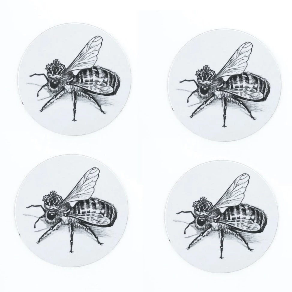 A lovely set of 4 Coasters made of Melamine with a smooth black baize backing showcasing a jet black Intricate Illustration of Queen Bee.