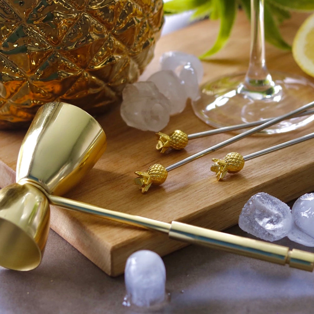 This pack of four pineapple drinks stirrers will add a little dash of style to your evening gin and tonic. With a delicate gold pineapple, these stirrers will be the trendy accessory you’re missing!