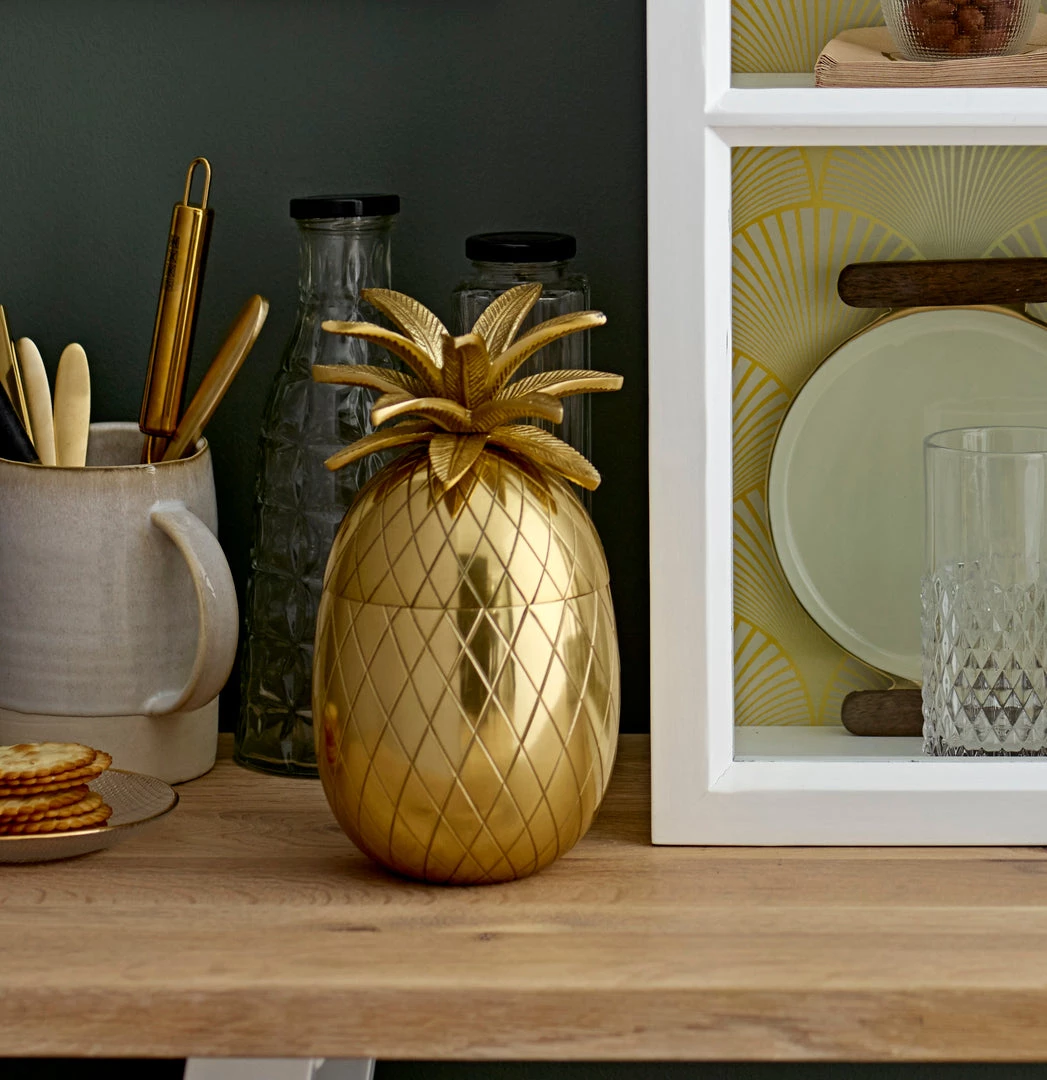 This spectacular golden pineapple ice bucket will be a beautiful statement party piece on any table centre or bar. Display alongside pineapple drinks stirrers to create a look of sophistication and glamour.