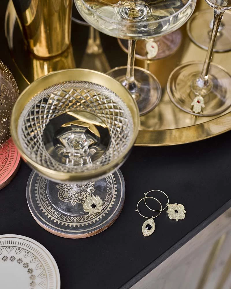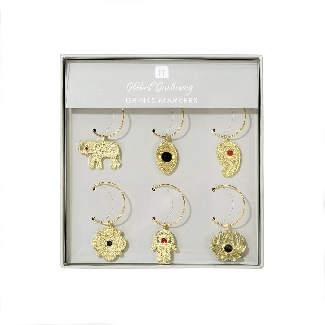 6 Gold coloured drinks charms in a pack. May your drinks never get lost again!This collection of durable table accessories feature globally-inspired designs and artisanal handcraft techniques.Â