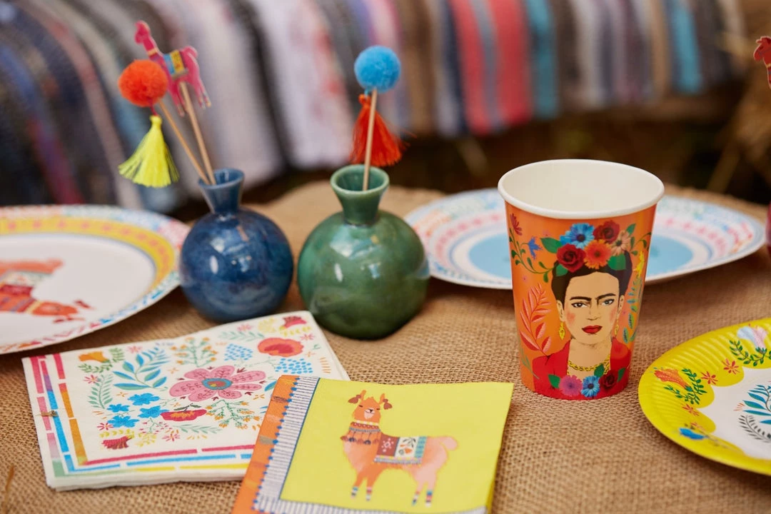 Boho llama party napkins. Paper cocktail napkins as disposable tableware for Mexican fiesta, summer birthday party or colourful paper napkins for decoupage. Match these napkins with our decorations and disposable tableware.